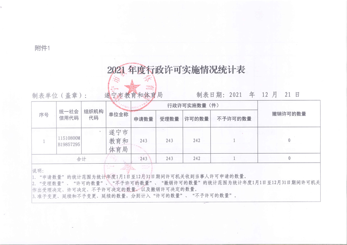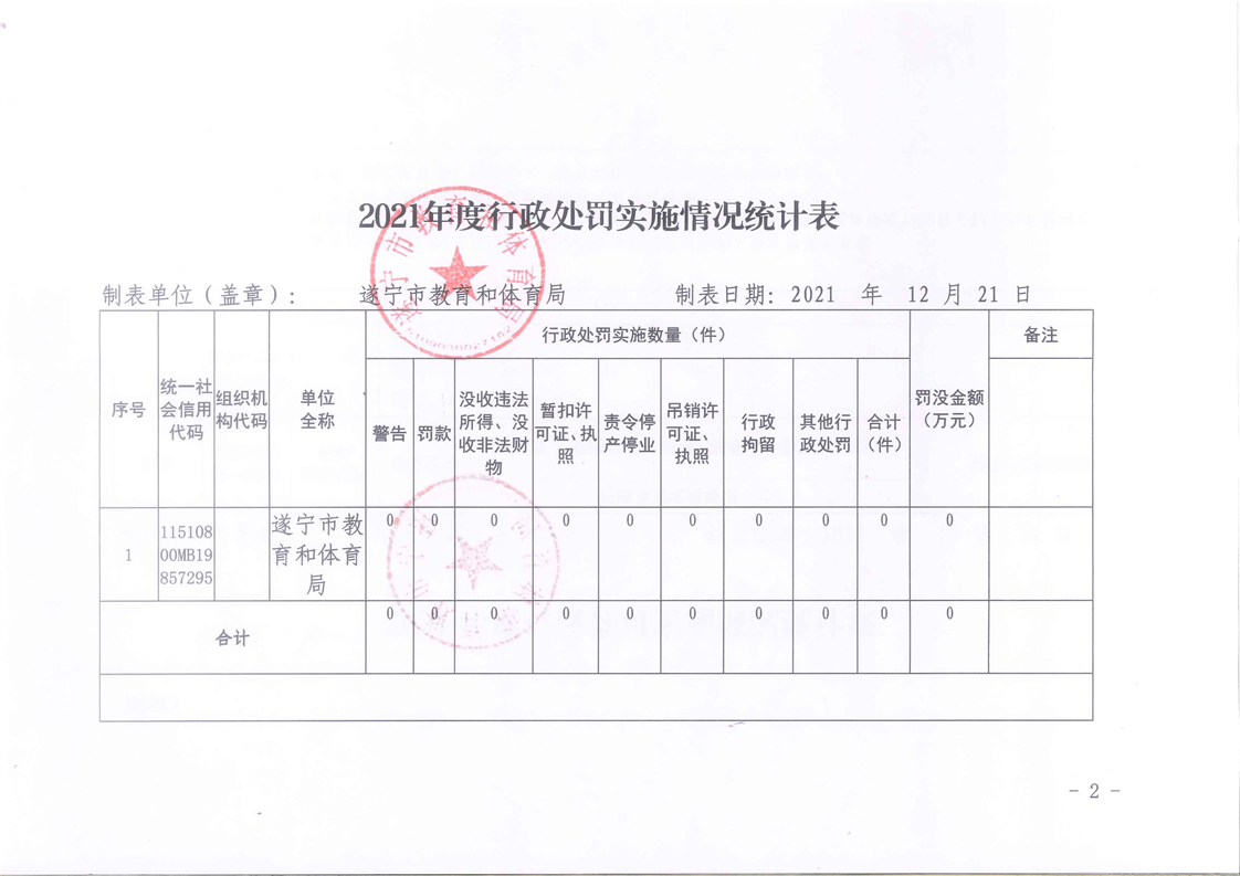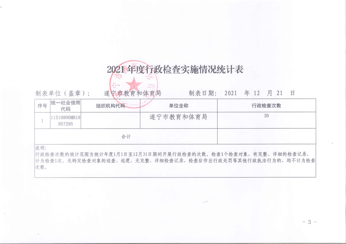 遂宁市教育和体育局2021年度行政执法和行政执法监督情况公示