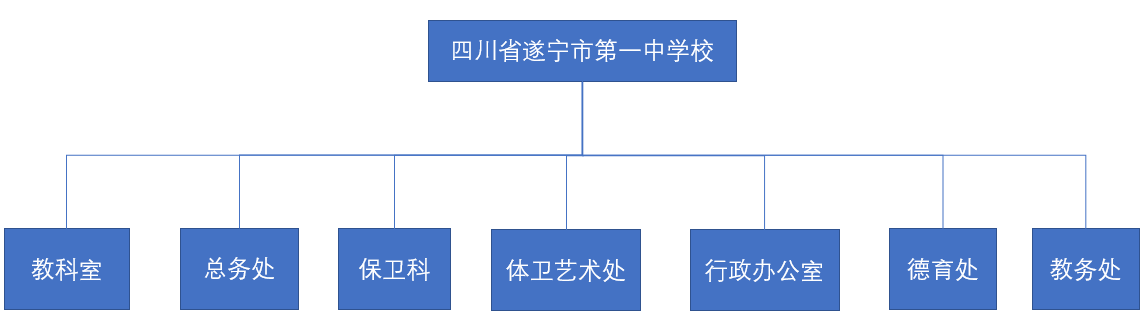 四川省遂宁市第一中学校隶属于遂宁市教育和体育局的财政全额拨款事业单位,无下级预算单位。我校下设7个业务科室,分别是教科室、总务处、保卫科、体卫艺术处、行政办公室、德育处、教务处。
