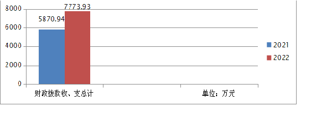 2022年财政拨款收、支总计7773.93万元。与2021年相比,财政拨款收、支总计各增加1902.99万元,增长24.48%。主要变动原因是我校西校区三期工程正式动工。(注:数据来源于财决01-1表)