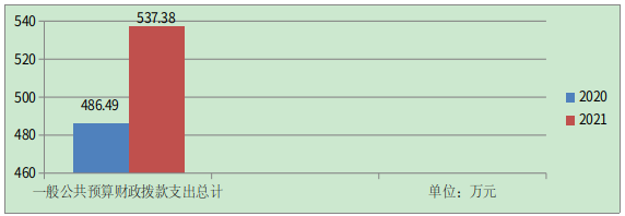 2021年一般公共预算财政拨款支出537.38万元,占本年支出合计的100%。与2020年相比,一般公共预算财政拨款支出增加50.89万元,增长10.46%。主要变动原因是本年度年初结转资金金额较大。