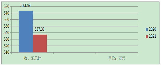 2021年度收、支总计537.38万元。与2020年相比,收、支总计减少36.21万元,下降6.31%。主要变动原因是本年度市本级教育发展专项资金项目金额减少。