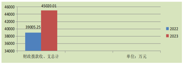 2023年度财政拨款收、支总计均为45020.01万元。与2022年度相比,财政拨款收、支总计各增加6014.76万元,增长15.42%。主要变动原因是2023年度教师人数增加,2023年新增收购机电校项目、2023年政府性基金预算财政拨款增加。