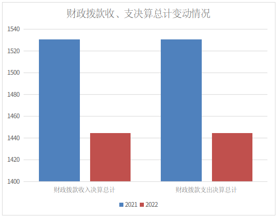 2022年财政拨款收入总计1444.66万元、支出总计1444.66万元。2021年财政拨款收入总计1530.90万元、支出总计1615.92万元,与2021年相比,财政拨款收入减少86.24万元,下降5.63%.财政拨款支出减少171.26万元,下降10.60%。主要变动原因是2022年基建项目减少。