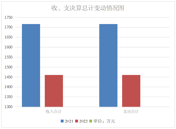 2022年度收入合计1461.37万元,支出合计1461.37万元,收、支总计2922.74万元。与2021年相比,收、支总计各减少256.67万元,各下降14.94%。主要变动原因是2022年初财政拨款减少,基建项目减少。
